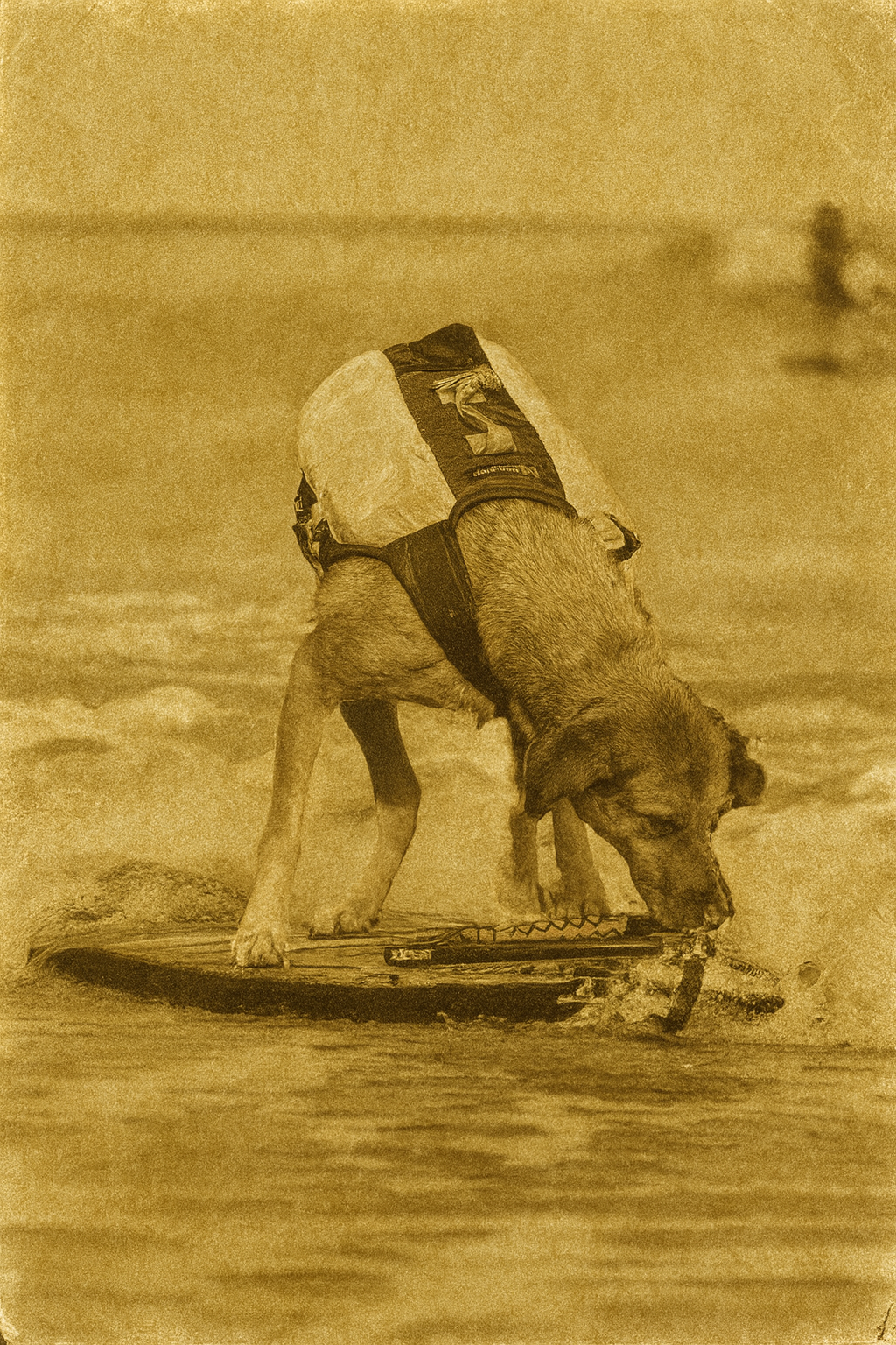 vervolgens werd bewerkt tot een echte vakantiefoto. Het resultaat leek alsof de honden zelf verre reizen hadden gemaakt!